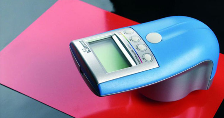 Die Wareneingangskontrolle und die Überprüfung der Qualität von Veredelungsschritten erfolgt mittels Farb- und Glanzgradmessgeräten. Ein weiteres Einsatzfeld: Die Kontrolle der eingesetzten Materialchargen in der Fertigungsüberwachung.